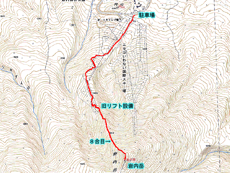 もと林道の終点にあるリフト跡から、登山道に入る部分