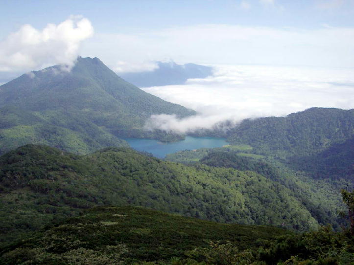 支笏湖は雲海の下で、少し雲がオコタンペ湖に流れ込んでいる。