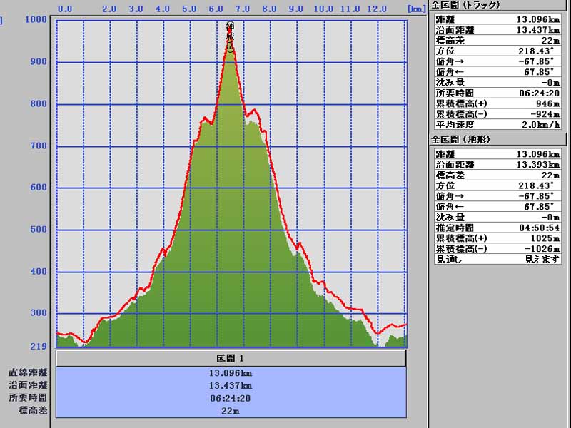 山頂発 11時15分 ( 41分) (休憩 41分)