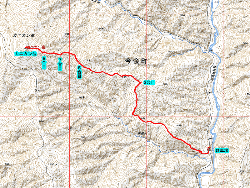 今年になり、今金町役場に電話で照会すると、道路は既に開通しており、町民によるカニカン岳登山も行われているので、登山道も問題ない筈だとの回答がありました。
