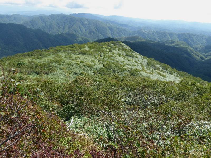 前年の2011年に登山をした時には、登山道の笹被りはまだ歩ける状態でしたが、2012年に登山した時は、3合目付近で笹被りが酷く登山道の位置を確認するのも困難になっていました。