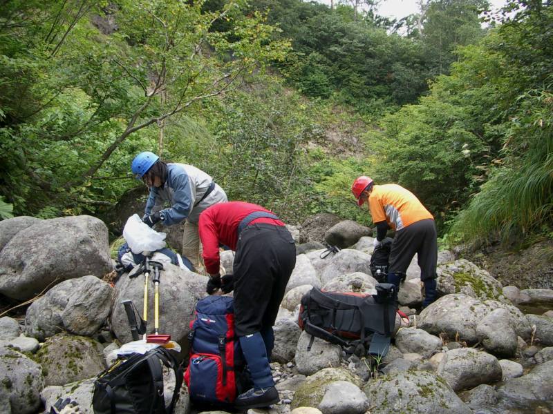 千走川の沢登りで狩場山に抜け、復路は新道を下りました。
