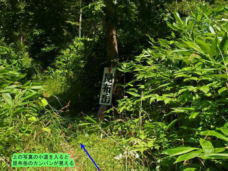 この登山道の中を覗くと、昆布岳の標識があります。