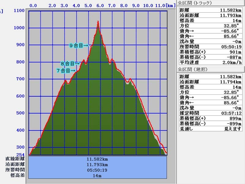山頂着 08時59分 (1時間48分) (2時間37分)