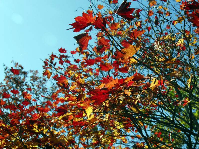 残念ながら、赤く色づく楓は盛りが過ぎていて、既に殆どが葉を落としてしまい、紅葉した葉が残っている木は僅かでした。