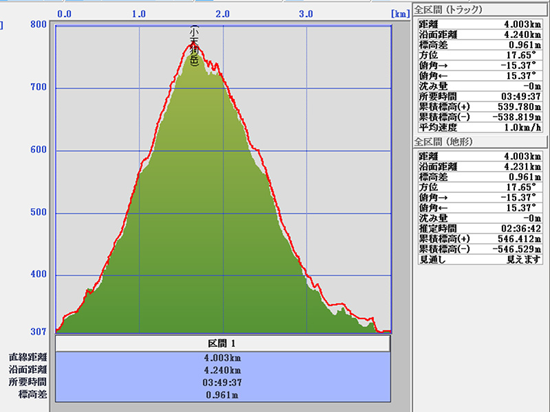 累積標高(+)地形 546m