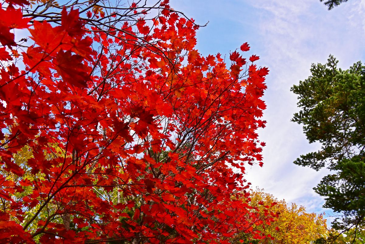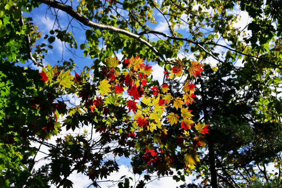 それより下は、黄色くなりはじめていますが、まだ青々とした木々もあります。