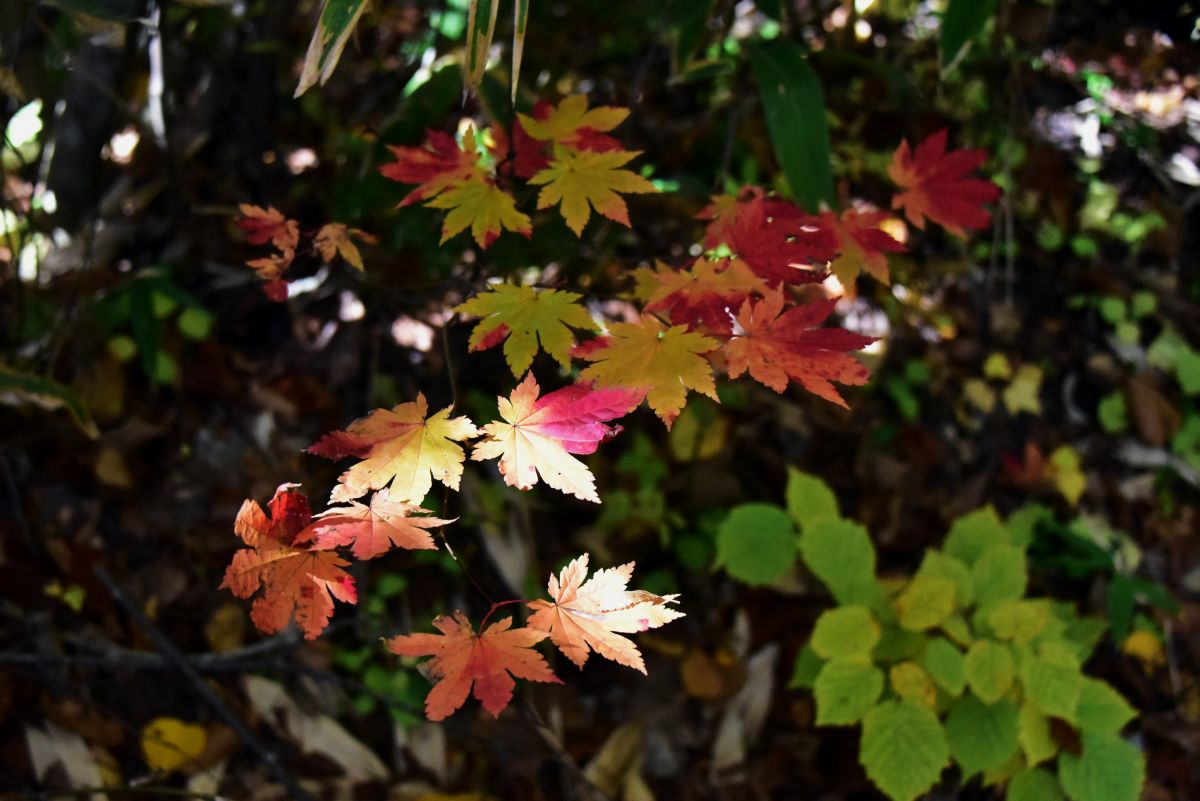登山道は、落ち葉が地面を隠すほど多く積もっているため、下の状態が判らず歩きづらい状態でした。