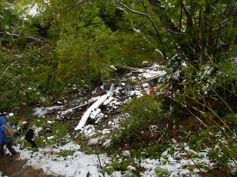 層雲峡オートキャンプ場(標高約500m)で夜半に降った雨は、山では雪を降らせたようです。