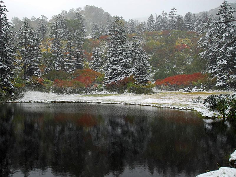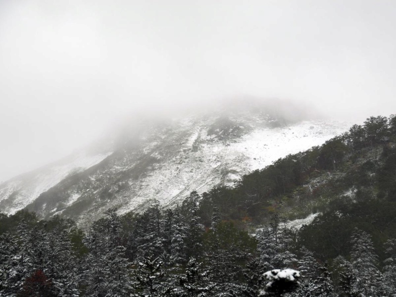 銀泉台は標高が約1500mあり、高原温泉はそれより約250m低いだけですので、寒気が入れば気温が下がり雪が降るのはやむを得ません。