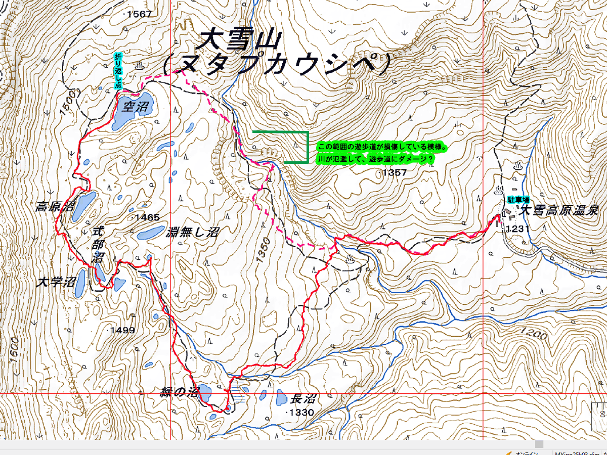 空沼より先は、遊歩道が損傷を受けていて、現在、一周はできません。