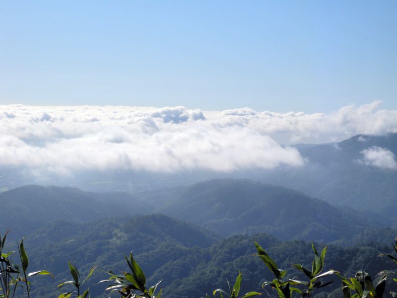 山頂で暫く休憩しましたが、東側から厚い雲が近づいてきたため下山を開始しました。