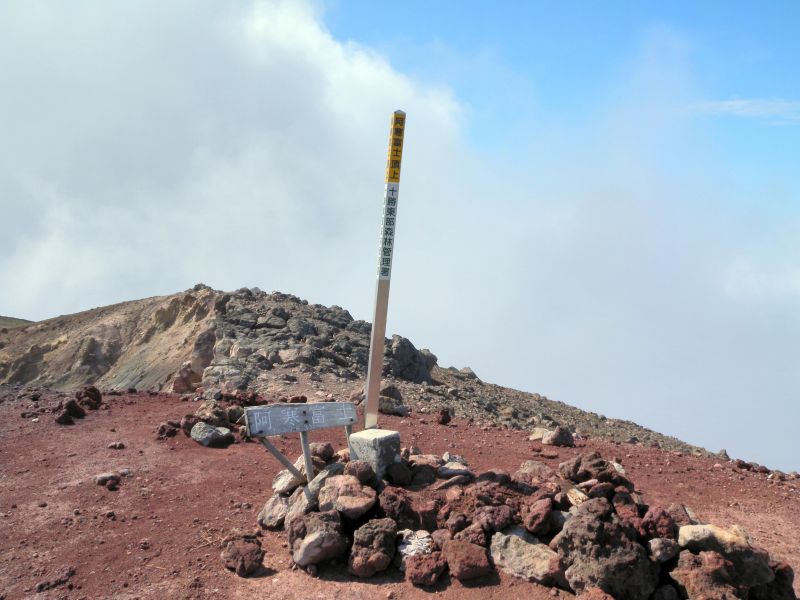 山頂では、前日雄阿寒岳山頂で話をした単独行の男性登山者にまた出会いました。