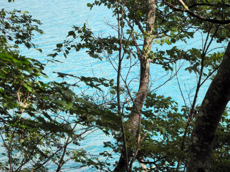 復路はオンネトーを半周するのですが、湖水の紺碧色が映えて素晴らしい景観でした。