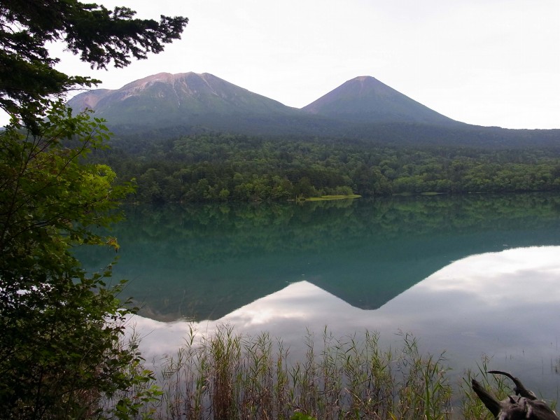 オンネトーの対岸からみた雌阿寒岳と阿寒富士です。