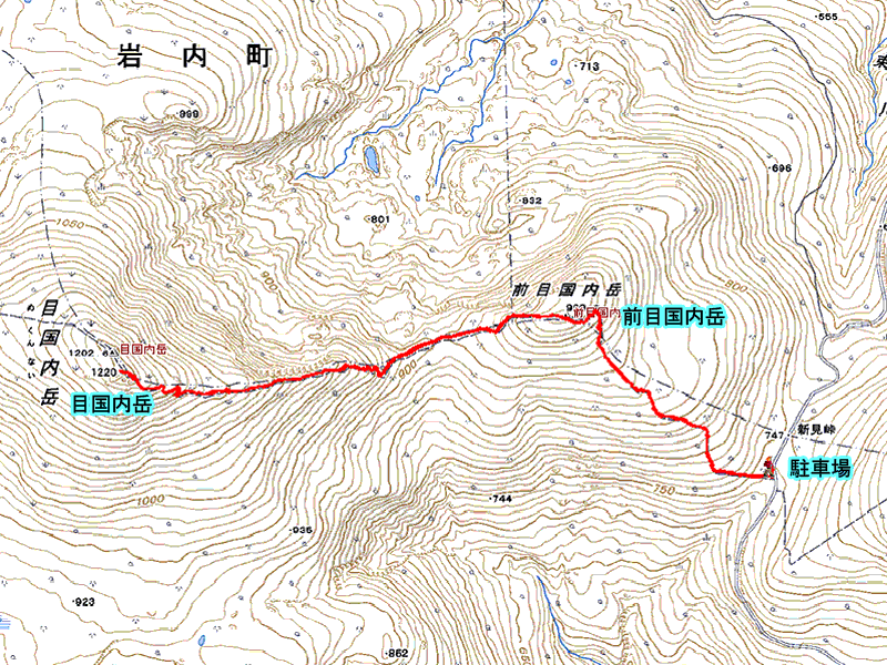 持参した岩内岳の地図に、目国内岳の登山道も載っていたのでそれを利用しました。