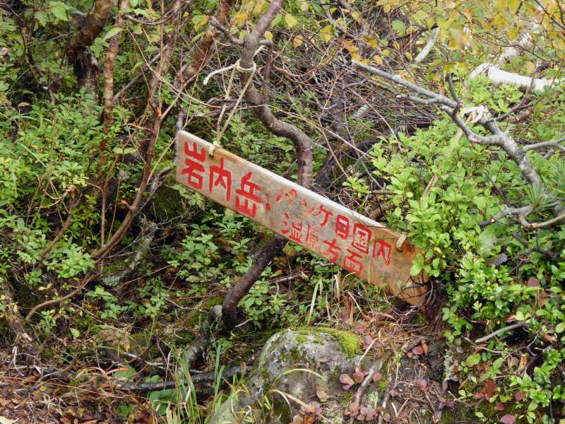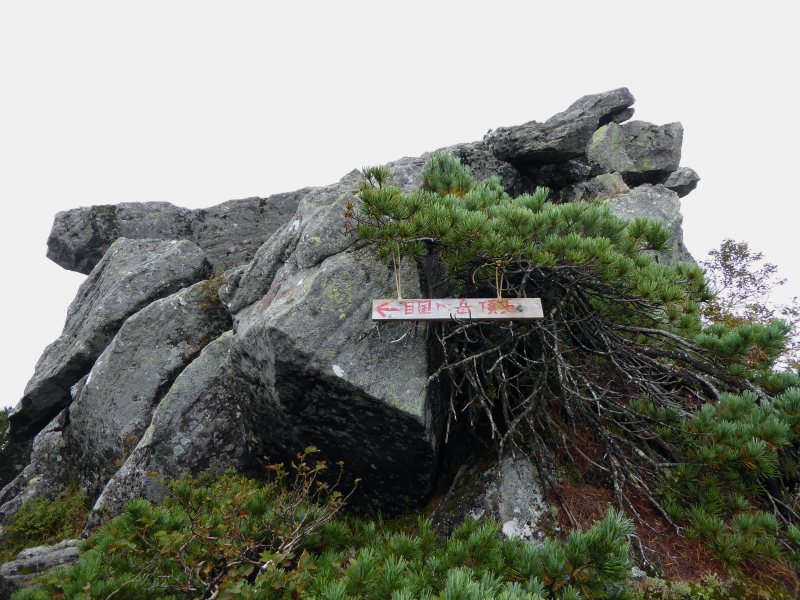 山頂岩塊手前の、岩内岳へ向かう分岐標識です。