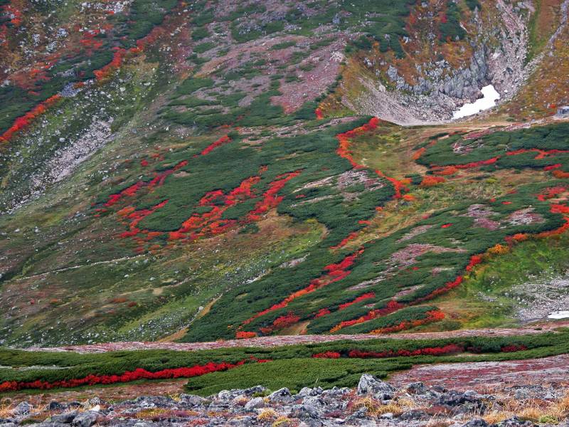 銀泉台から緑岳山頂を往復しました。 駐車場 06時37分 第一花畑 07時25分 (0時間48分) 山頂着 09時33分 (2時間08分) (2時間56分) 山頂発 10時00分 (0時間27分) (0時間27分) 駐車場 12時24分 (2時間24分) (2時間24分) 合計所要時間 5時間47分 (GPS記録) 総上昇量 m 総下降量 m 累積標高(+)トラック 818m 累積標高(+)地形 848m TP積算距離 8.8km (メモ) カメラ・紅葉綺麗