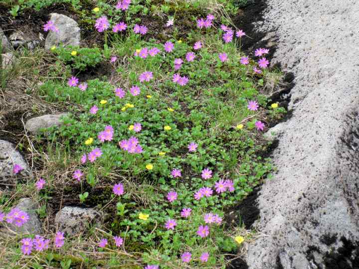 これから上は大きめの石が斜面を覆っているガレ場が山頂まで続くので、登りに備えて一緒に休憩をしました。