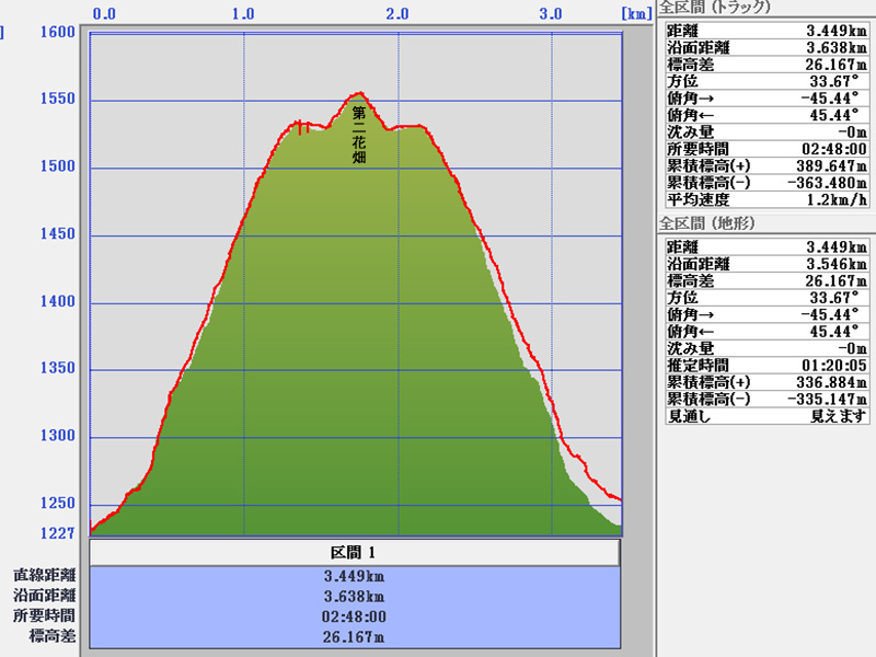 累積標高(+)地形 336m