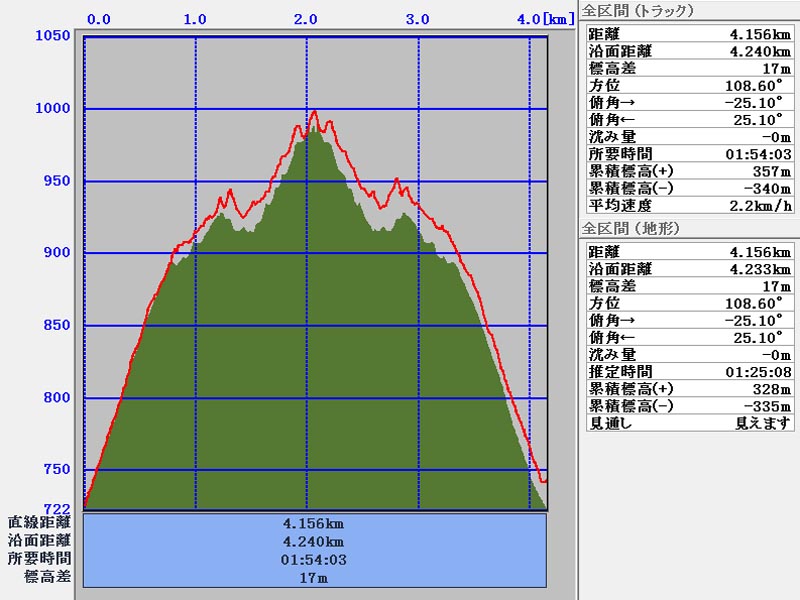 往復の距離は4km強で、上昇量も360m程度ですので、散策気分で登れる山です。