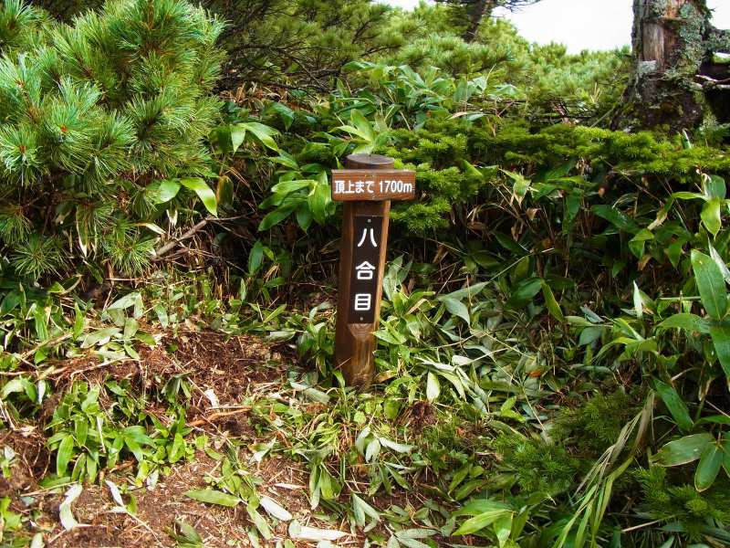 登り始めてすぐに「八合目」の標識が現れて、驚かされました。