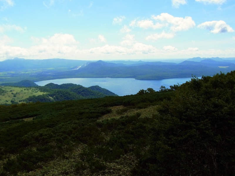 山頂は雲の中で、遠方視程はありませんでした。晴れていれば、屈斜路湖などが綺麗に見えたのでしょうが。