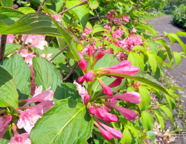 車道の両側には、色々な花が咲いています。