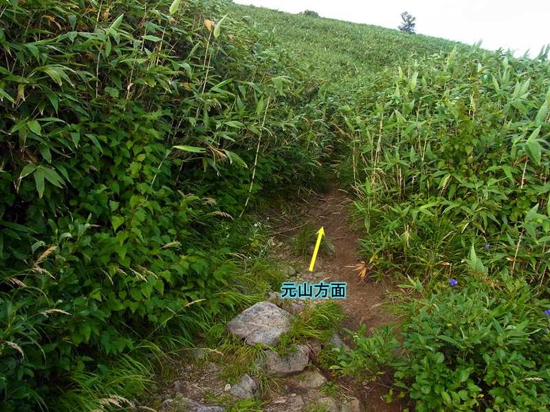 元山方面は、分岐から直ぐに笹被りの状態になります。