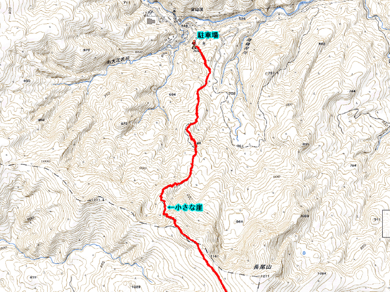 休憩は、「小さな崖、水の流れている小さな沢、分岐」の3箇所でとっています。