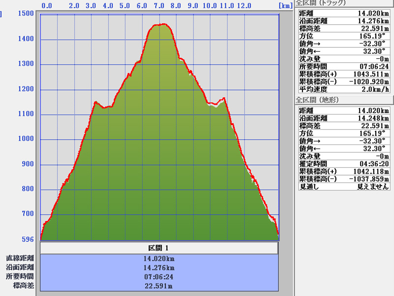 山頂着 11時05分 (0時間45分) (3時間35分)