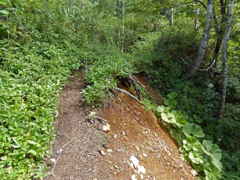 登山道は以前と変わりありませんでしたが、笹が生長したため登山道にカブリ、歩きづらくなっています。