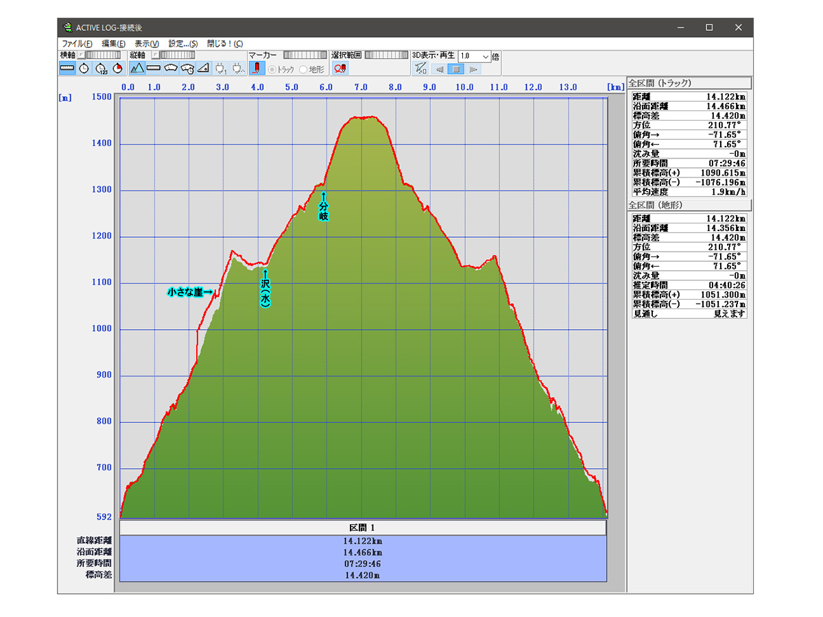 駐車場 14時29分 (1時間15分) (3時間27分)