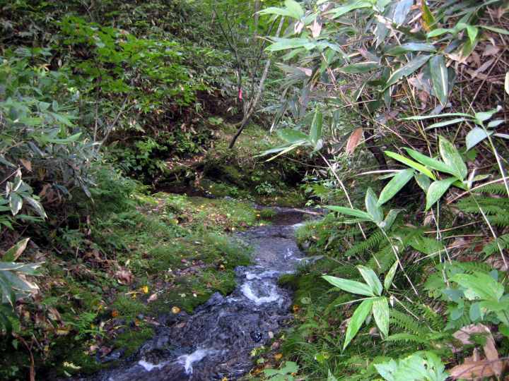 水元沢では小さな沢を5〜6回横切ります。登山靴を濡らさないように石の上を苦労して渡るのですが、流石にこういう場面では長靴が威力を発揮していました。
