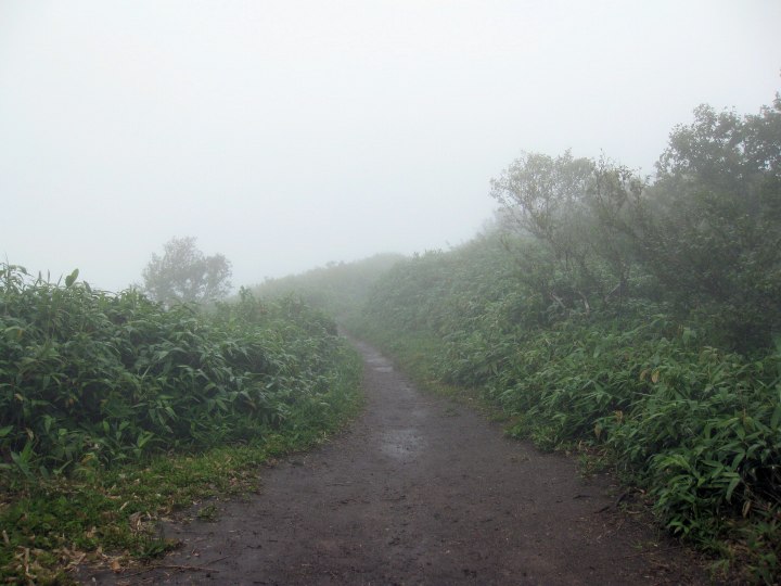 できれば水元沢コースを下山したかったのですが、山頂付近の分岐から見たところ濃霧で視程が全くありませんでした。