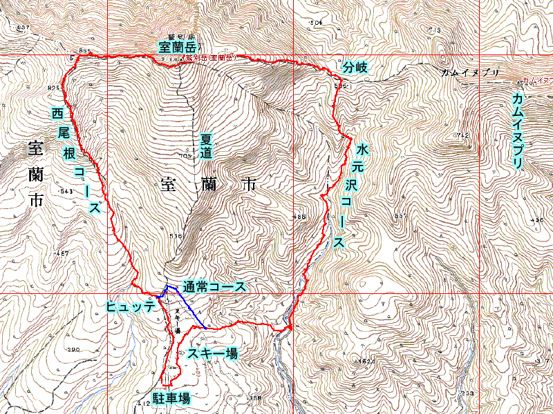 水元沢コースの最後は室蘭岳ヒュッテまで登っているのですが、今回はスキー場に下りる苅分道が作られていたのでそちらを利用しました。