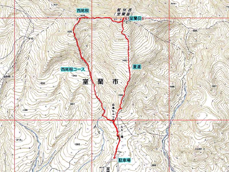 西尾根(新道)コースで登り、南尾根(旧道)コースを下山しました。