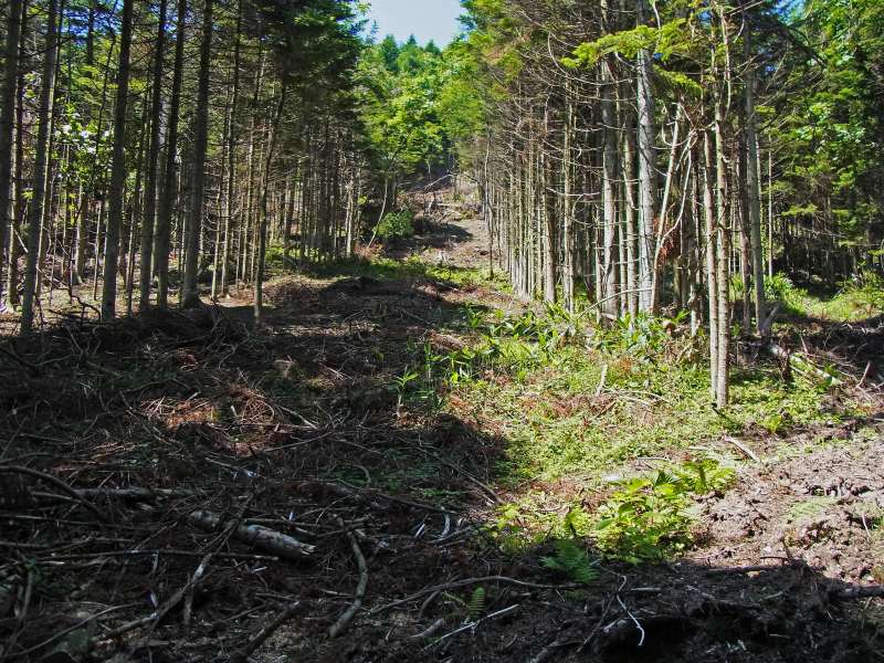 急斜面が続きますが、下の方では伐採作業が行われていて