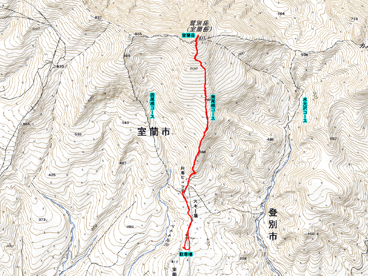 登山者用駐車場から夏道コースで室蘭岳山頂を往復しましt。