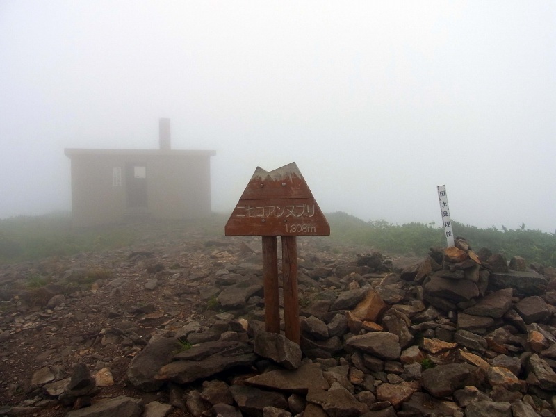 アンヌプリの山頂は濃霧の状態で、残年ながら羊蹄山を眺めることはできませんでした。
