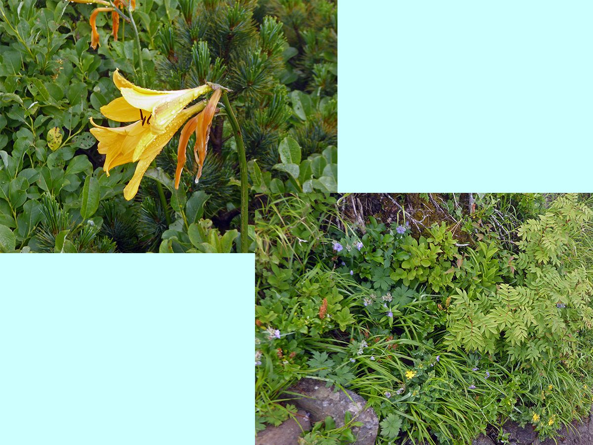 登山道脇の夏草が露で濡れていたので、露払いをしながら歩きましたが、結局ズボンを濡らしました。