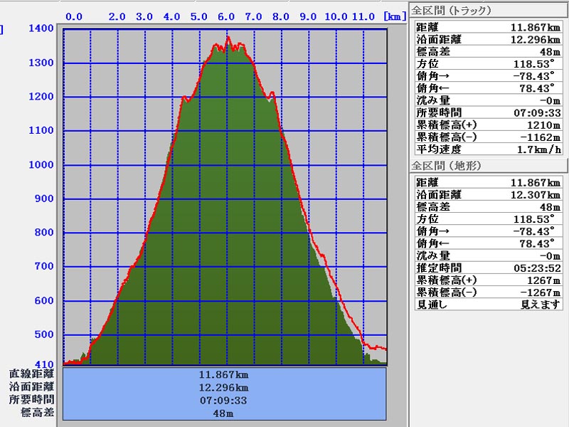 山頂着 09時35分 (0時間28分) (往路 3時間45分)
