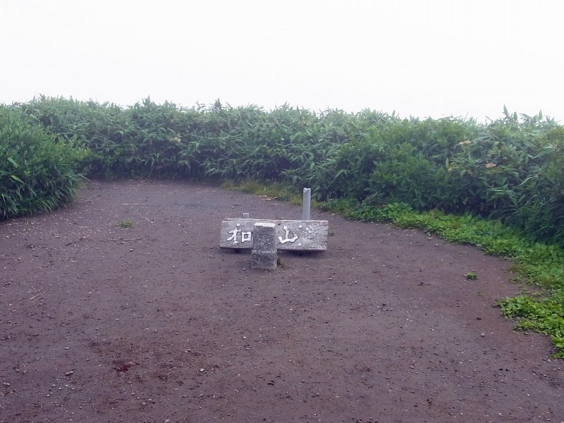 登山口のある駐車場も濃霧の中で、視程が不良でしたので、暫くガスの晴れるのを待ちました。
