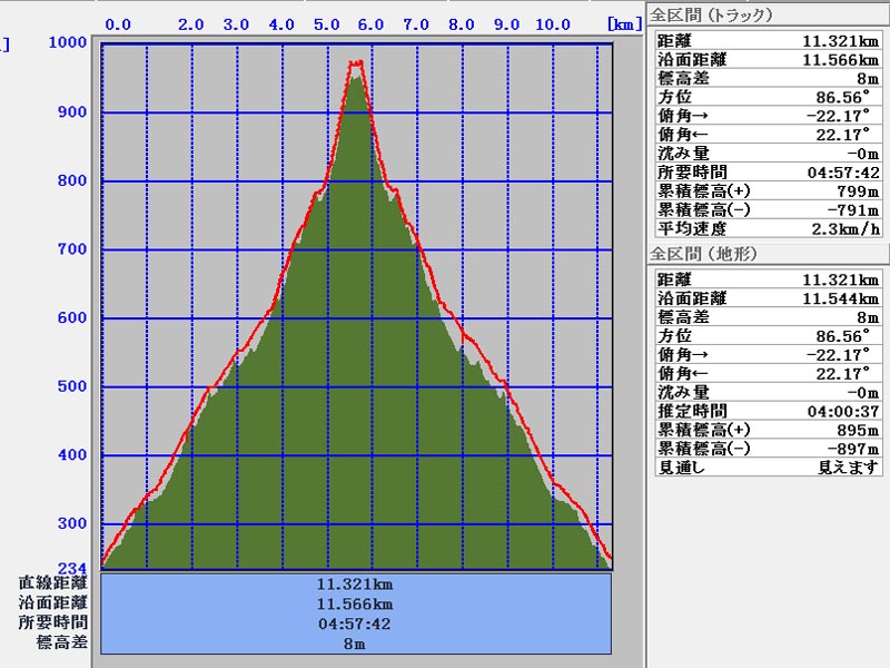 山頂着 09時50分 (0時間14分) (2時間36分)