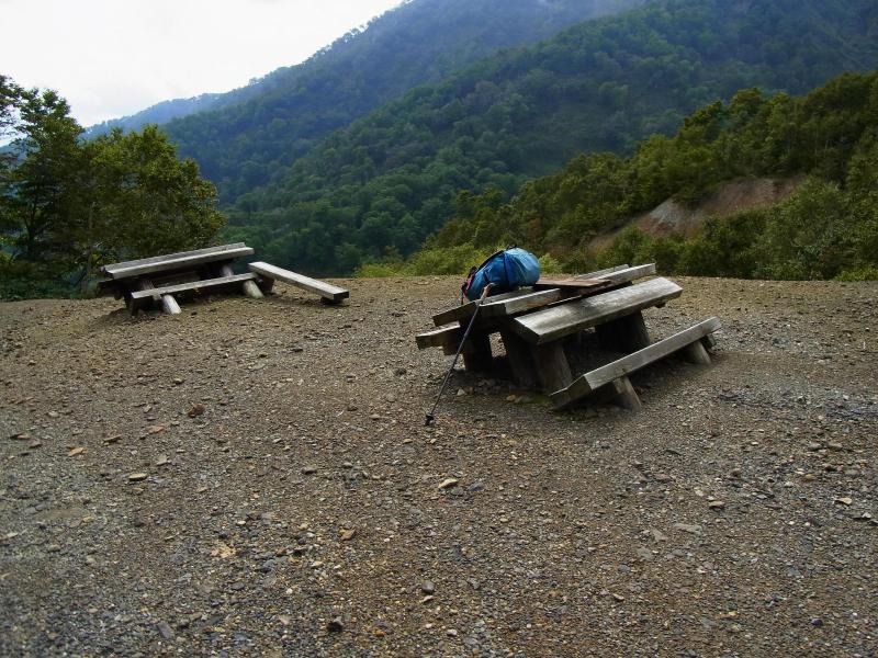 降雨直後のため草木が濡れていることを考えて、駐車場で雨具のズボンを着用し、ズボンはザックに入れました。上は夏シャツ(長袖)にしました。