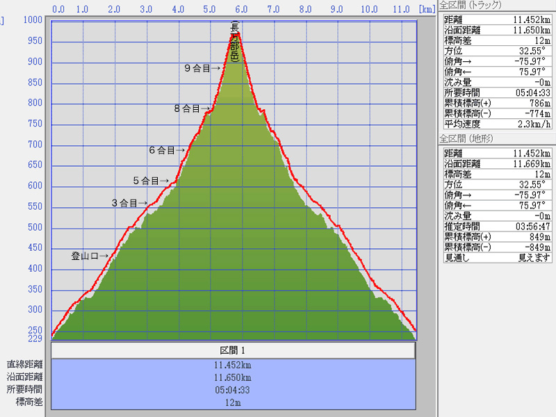 山頂着 08時49分 (0時間36分) (2時間43分)