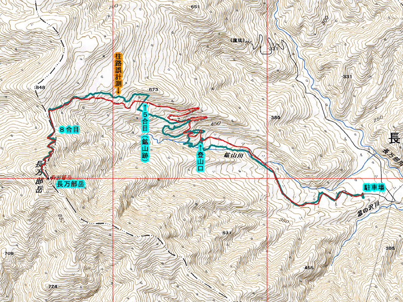 青で表示した軌跡が往路分で、赤線が復路分ですがこちらは正常です。