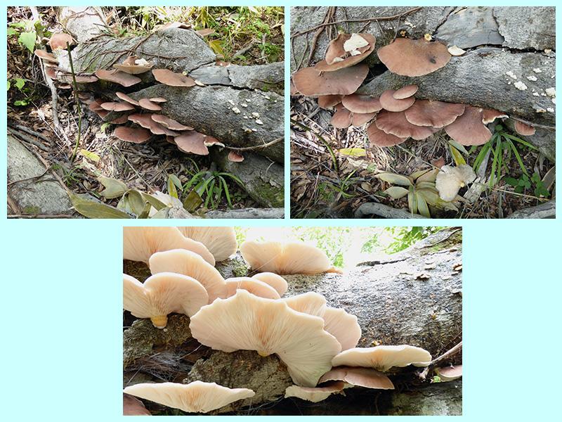 登山道を塞ぐ倒木に生えていましたが、食べられるキノコ