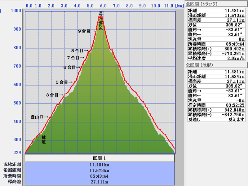 山頂着 10時11分 (0時間47分) (3時間01分)