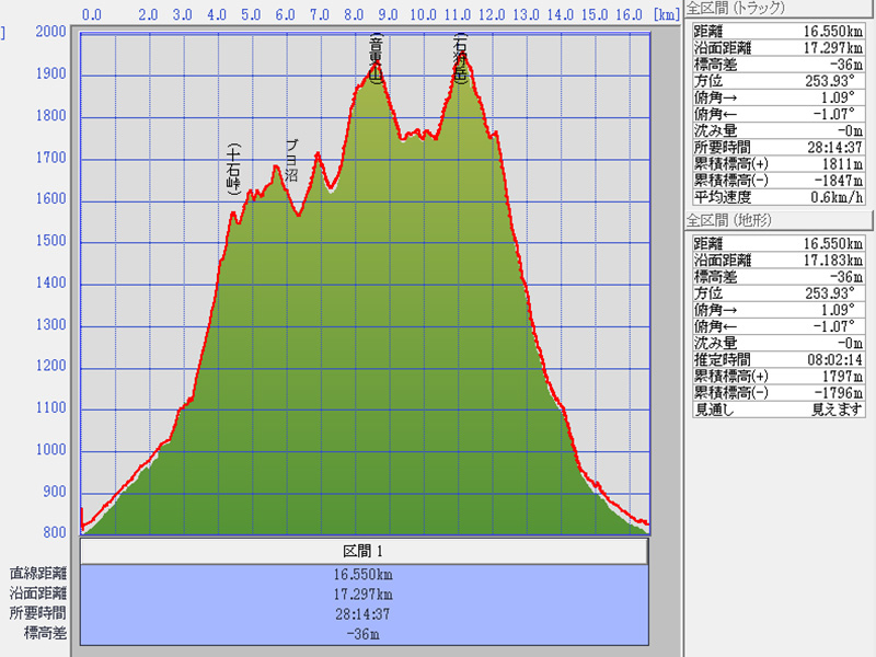 登山道の判りづらい場所では、その都度GPSで位置を確認しました。